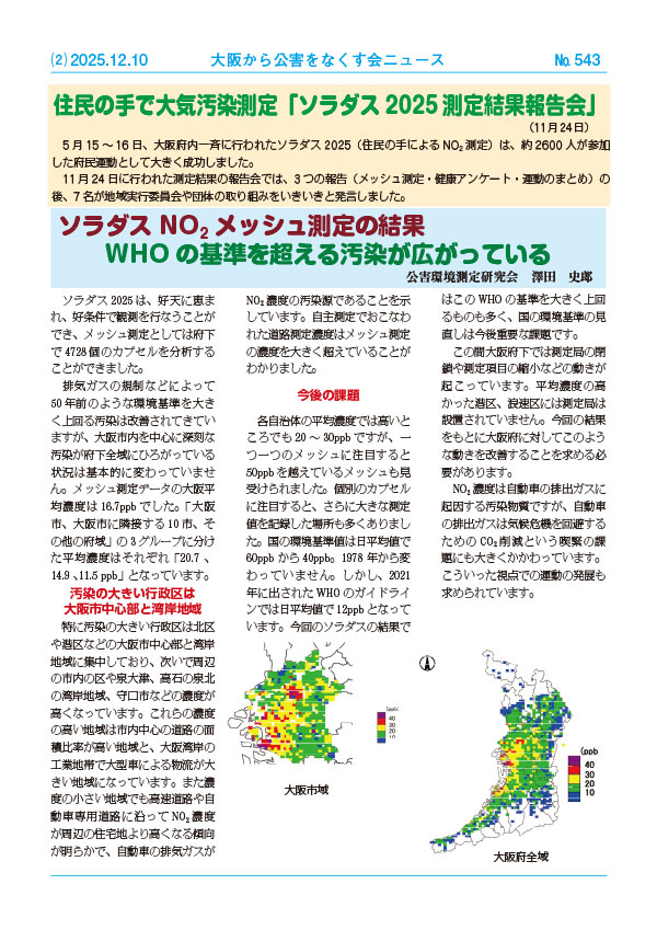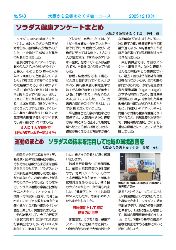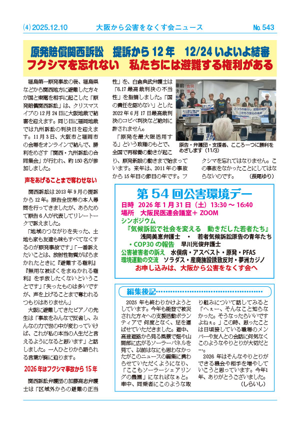 なくす会ニュース No.543 『排出企業は資料開示・健康調査・被害補償を…ダイキンPFAS公害調停にあなたも参加を!』など