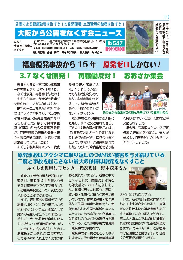 ■お申し込みは、大阪から公害をなくす会 へ。